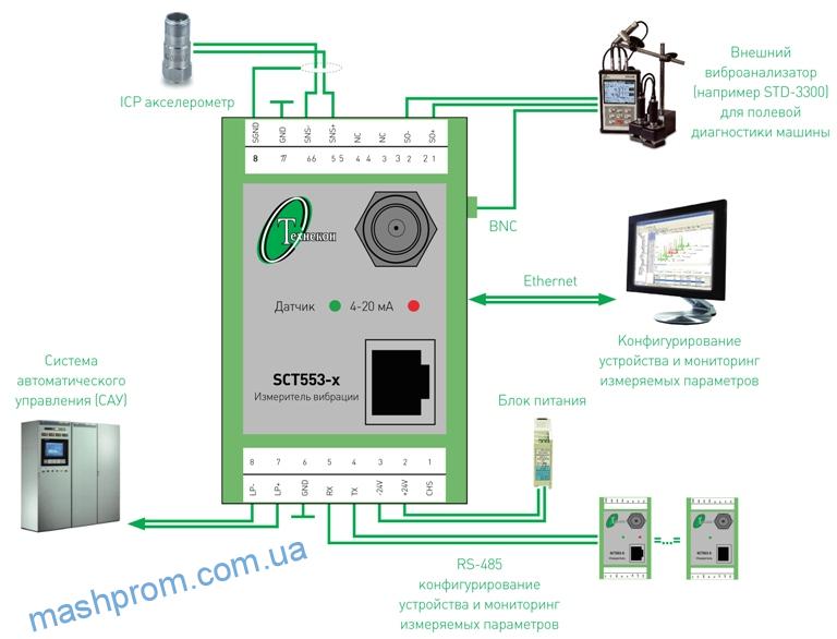SCT553-x – прибор для измерения и контроля вибрации промыш- ленных агрегатов.