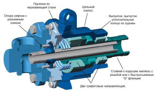 Ротационное соединение серии SX предназначенно для подачи пара или термомасла. Два внутренних уплотнения из графита, уплотнительное кольцо из сурьмы и оптимизированная геометрия уплотнений, позволяют данному соединению быть износостойким, долговечным, иметь возможность самоцентровки, а также уменьшают риск повреждения. Соединения серии SX доступны как в однопоточном, так и в двухпоточном исполнении. Диапазон применения: максимальная температура — 650 °F (343 °C), максимальное давление — 300 psi (20 бар), максимальная скорость — 550 об/мин.